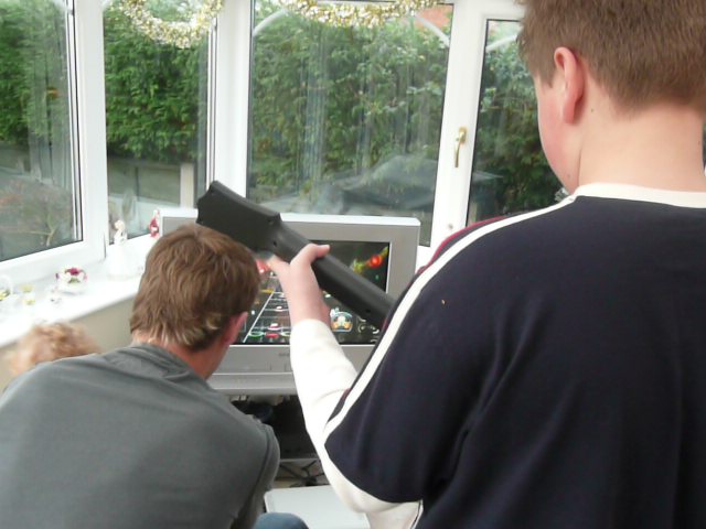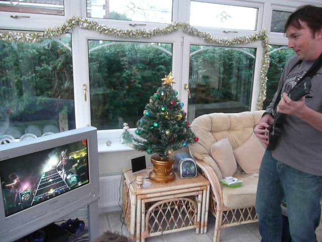 Xmas day at Debs Mums and Pauls, we got Lewis Guitar Hero for a present (xbox360). Unknown to them, me and debs had a practice the night before whilst wrapping. So thats why we are guitar kings