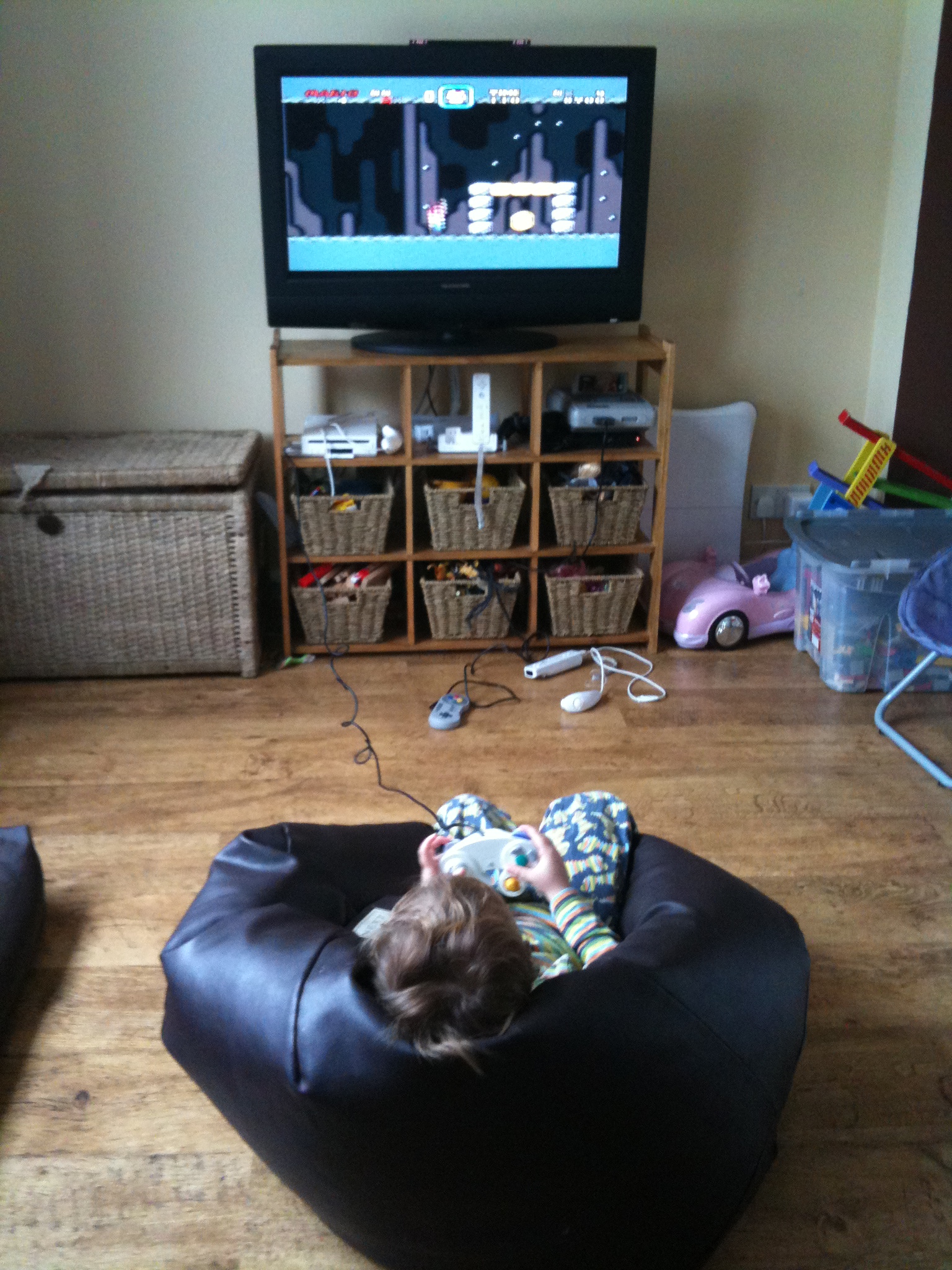 Luke playing Wii Mario, he loves it