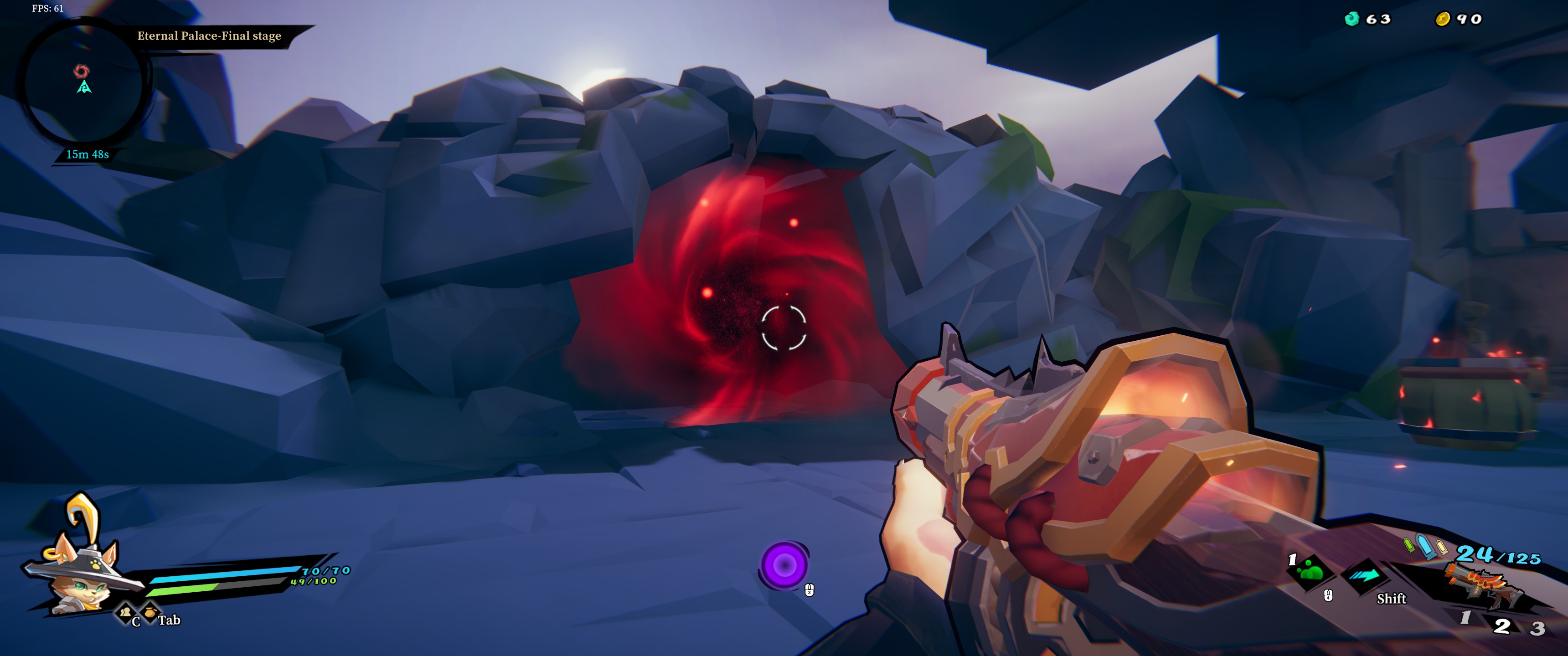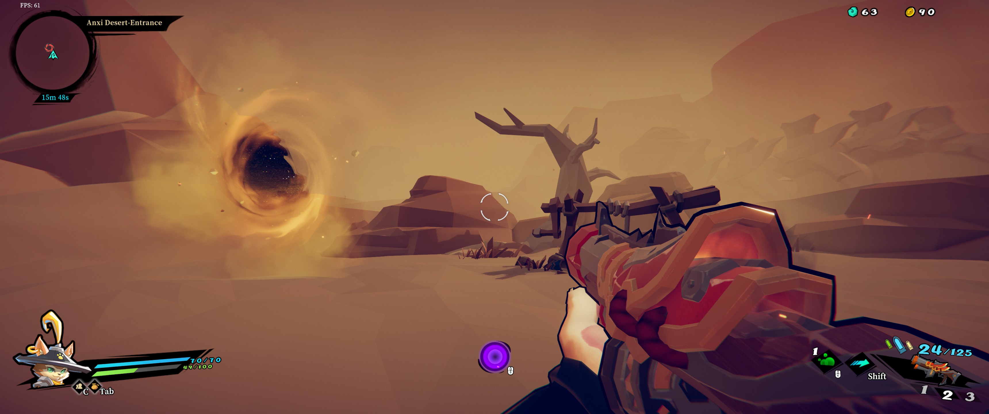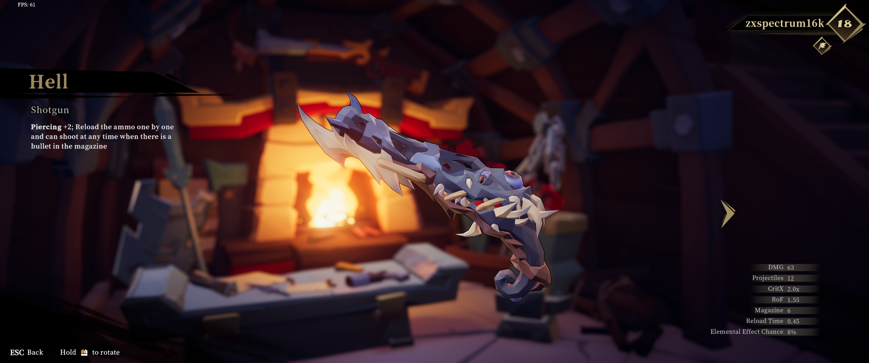 I picked up a great shotgun called ‘Hell’, which could take the big shield guys down in one shot. Allows for quick runs through the world.