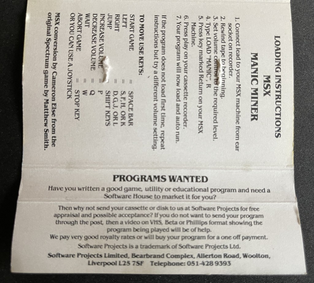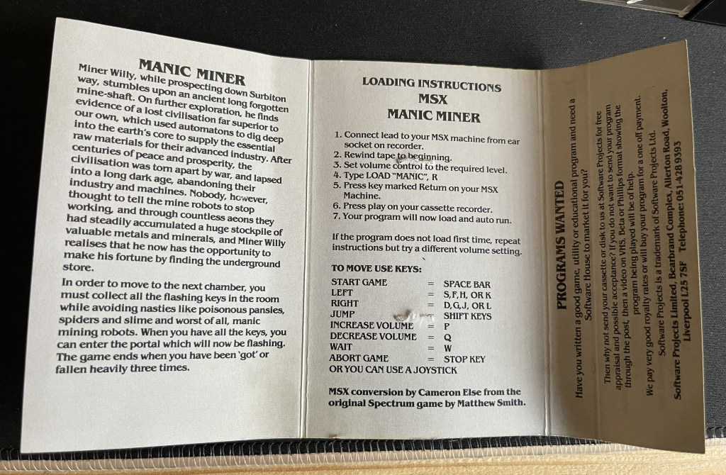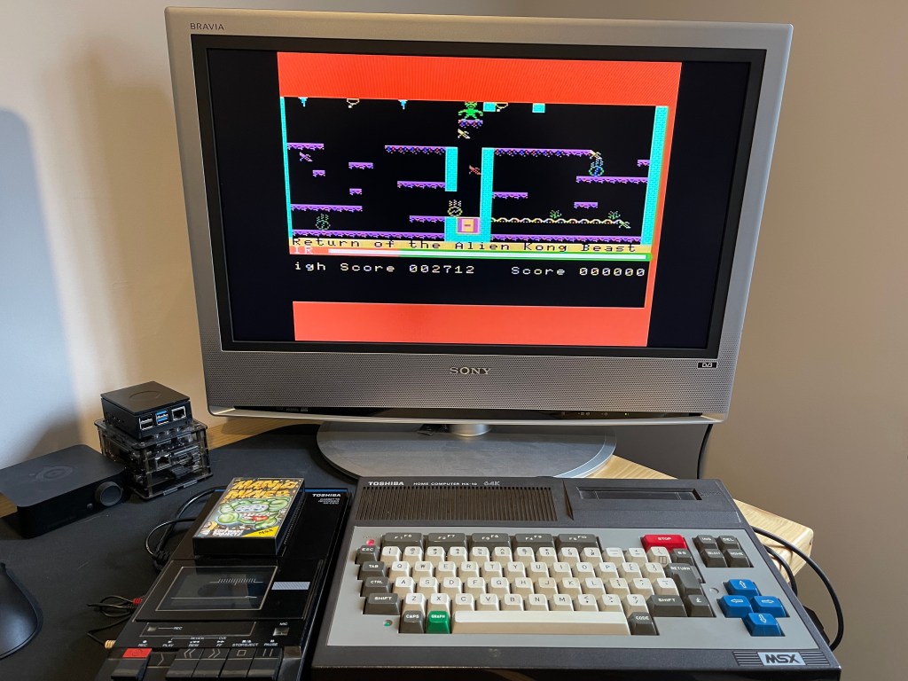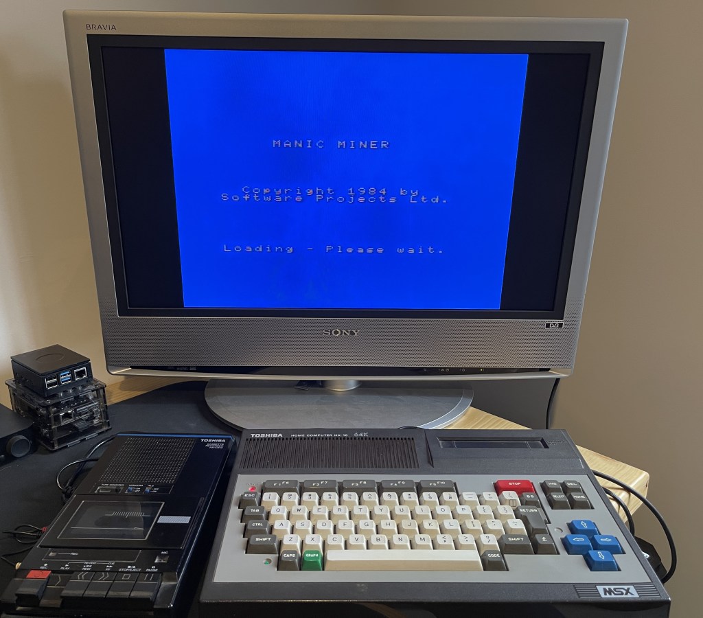 2023, this is the very first time playing on the original MSX Hardware; back in 1984, I was only 15 and getting an MSX was just a dream. So what game do i pick to test it, it had to be Manic Miner. Let’s see what the extra few K give the MSX compared to the ZX Spectrum version.