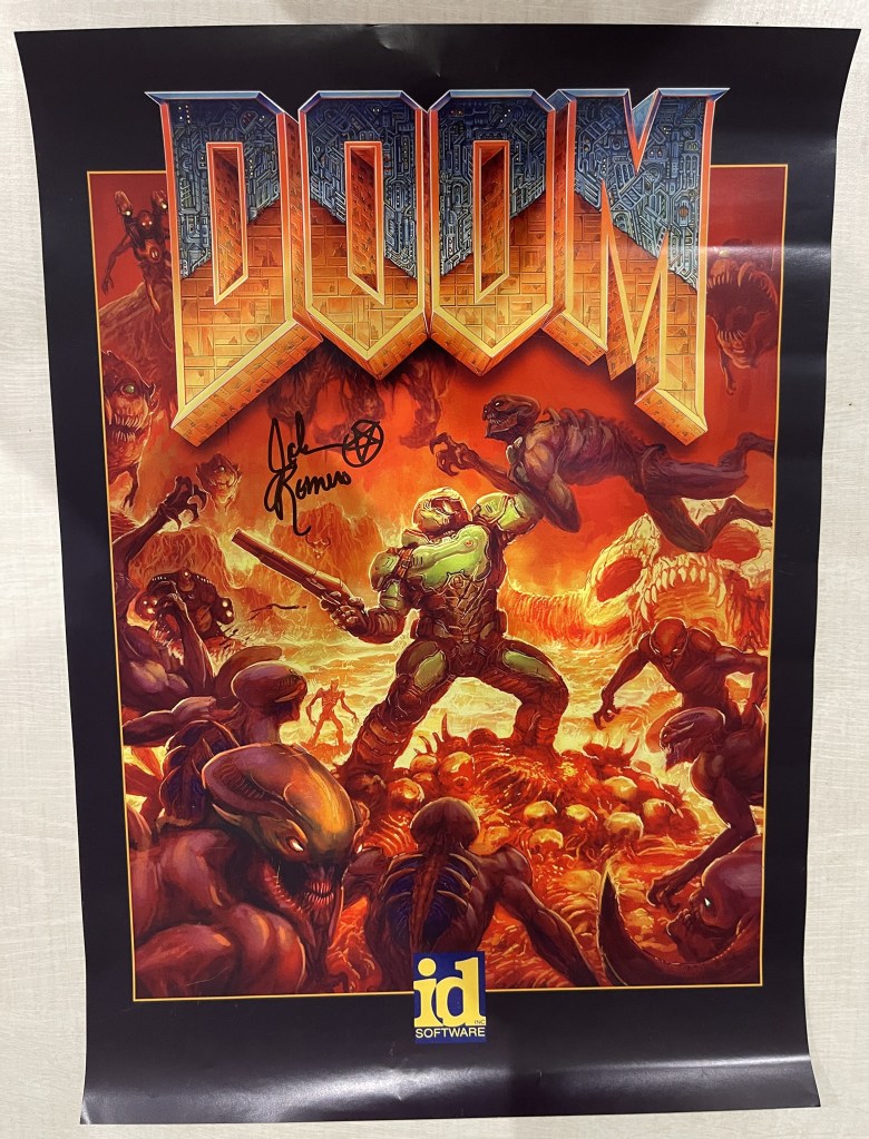 I picked these Doom, Romero Games, ID Software goodies, All signed, in addition to meeting the Legend John Romero at #PlayExpoBlackpool 2023. I’m looking forward to reading the autobiography of one of my heroes, ‘Masters of Doom’, is still one of my favourite reads. And I can’t wait to try out Sigal, new Megawad for the original Doom. #doom #romero #playexpo