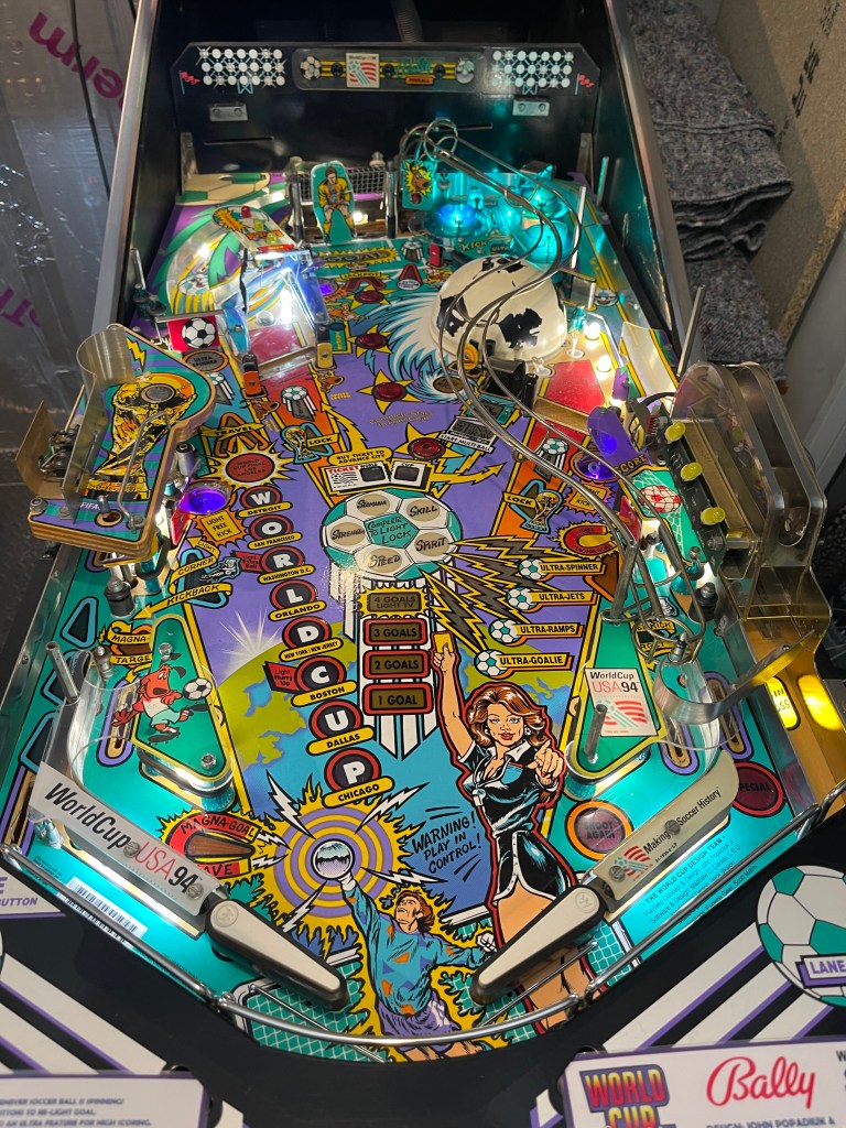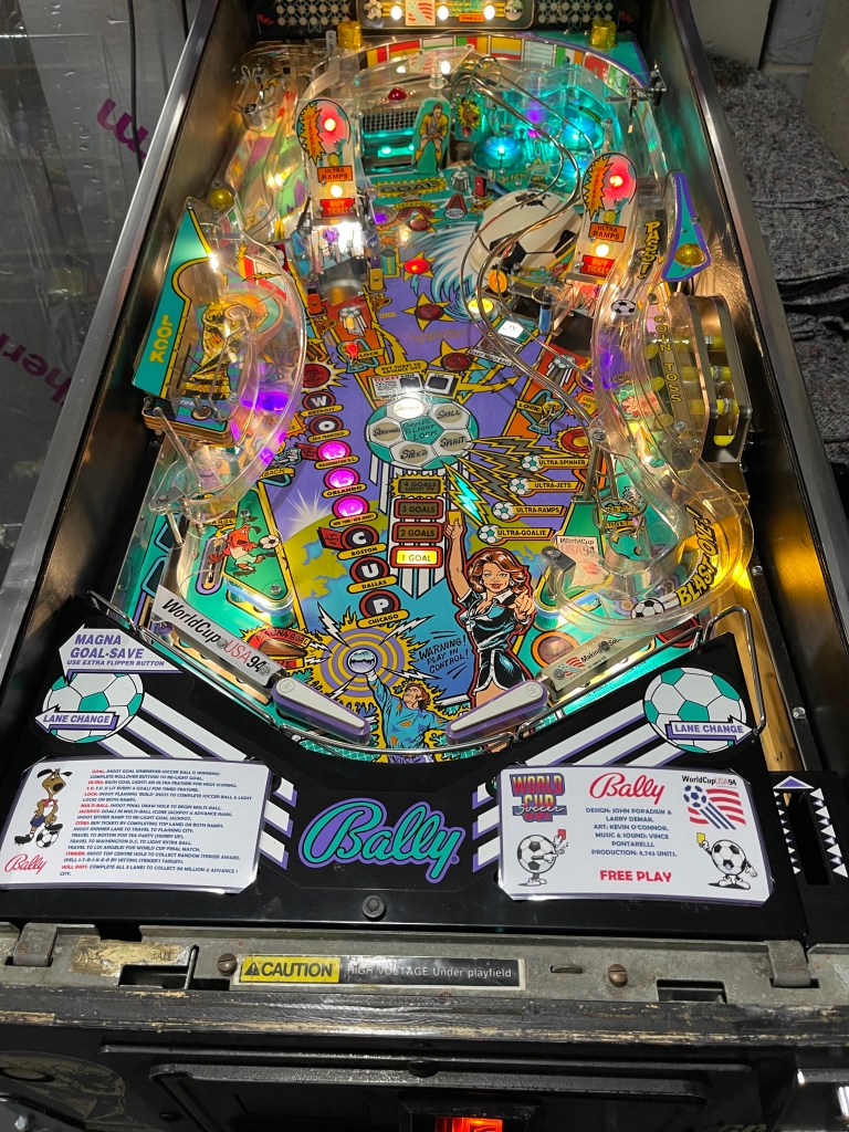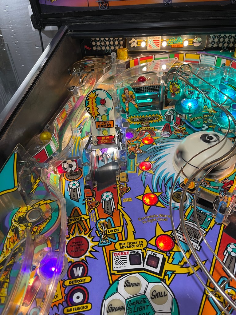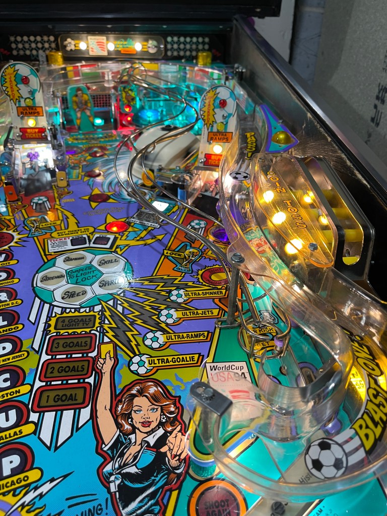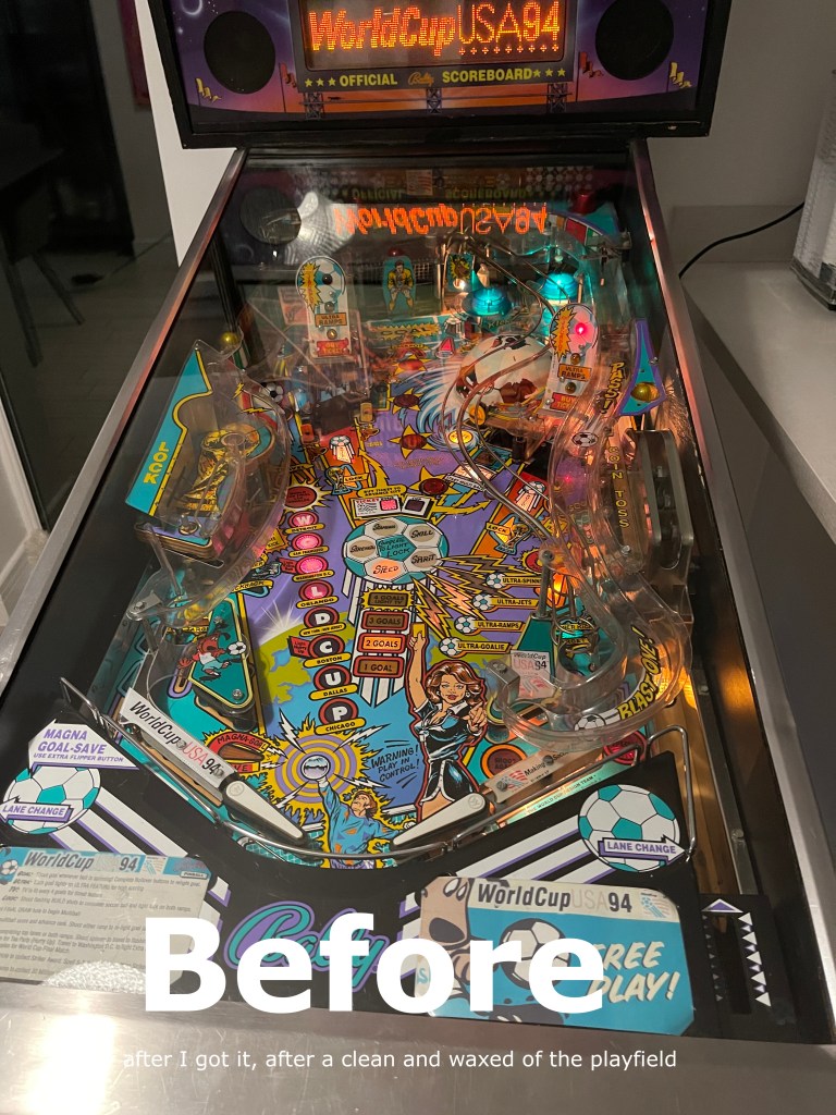 I have made several fixes to my World Cup Soccer pinball machine. When I first acquired it, the left General Illumination, along with several other lights, were not working. There were also numerous errors in the log startup, the flippers were weak at times, and the playing field was dirty.
