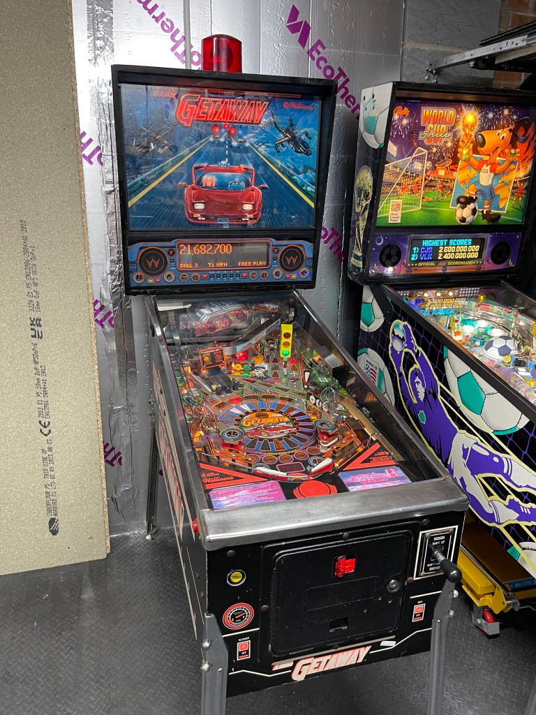 I just managed to get “The Getaway: High Speed 2”. Ever since playing it at Pinfest24, I have been thinking about getting one. It’s such a fun game, and I enjoyed the game flow. It has some solid shots, and the “SUPERCHARGER” mode is fantastic. A small elevated loop, fed by the left ramp and fitted with a magnetic ball accelerator, makes the balls go mega fast around the loop, sometimes five times, sometimes ten times.