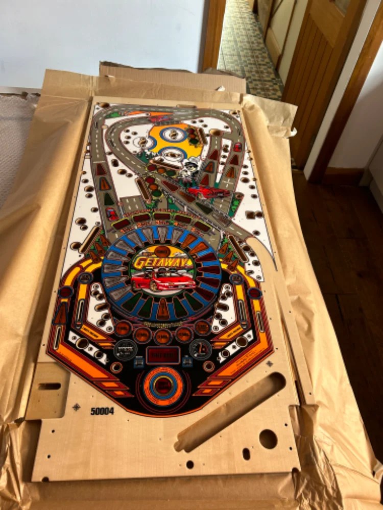 When I came across a great deal on the pinball info forum, I couldn’t resist checking it out. The pinball machine is being sold as a project and comes with a new playfield, decals, and side rails that need to be installed. The machine is currently playable, so I’m planning to replace the playfield next summer when I feel more confident about taking on a full playfield swap. The playfield is made by Buthamburg.