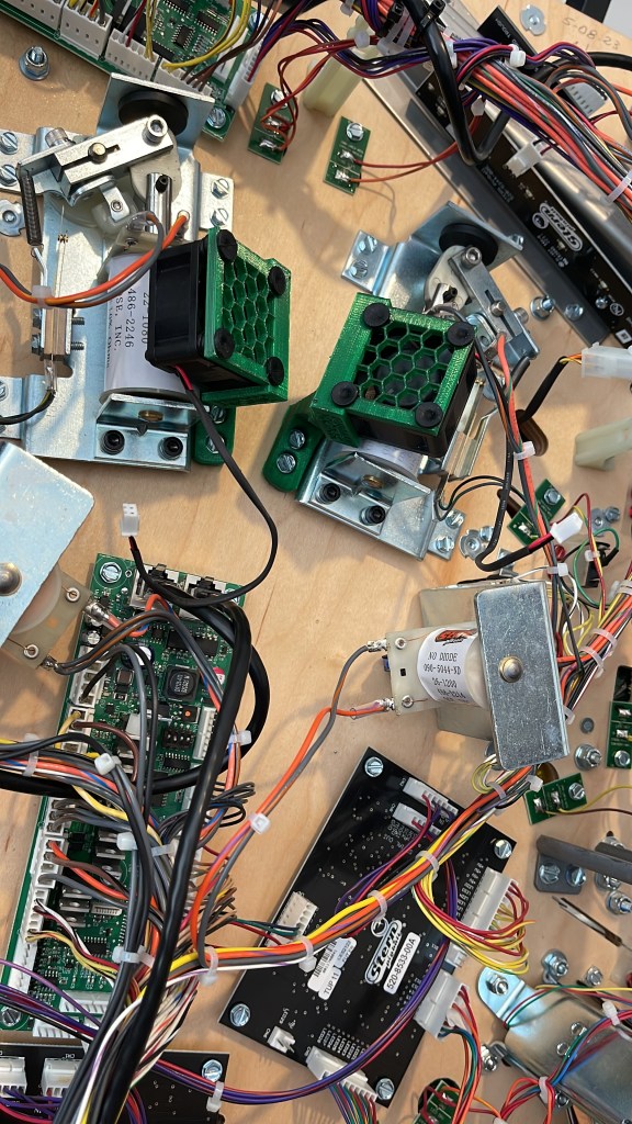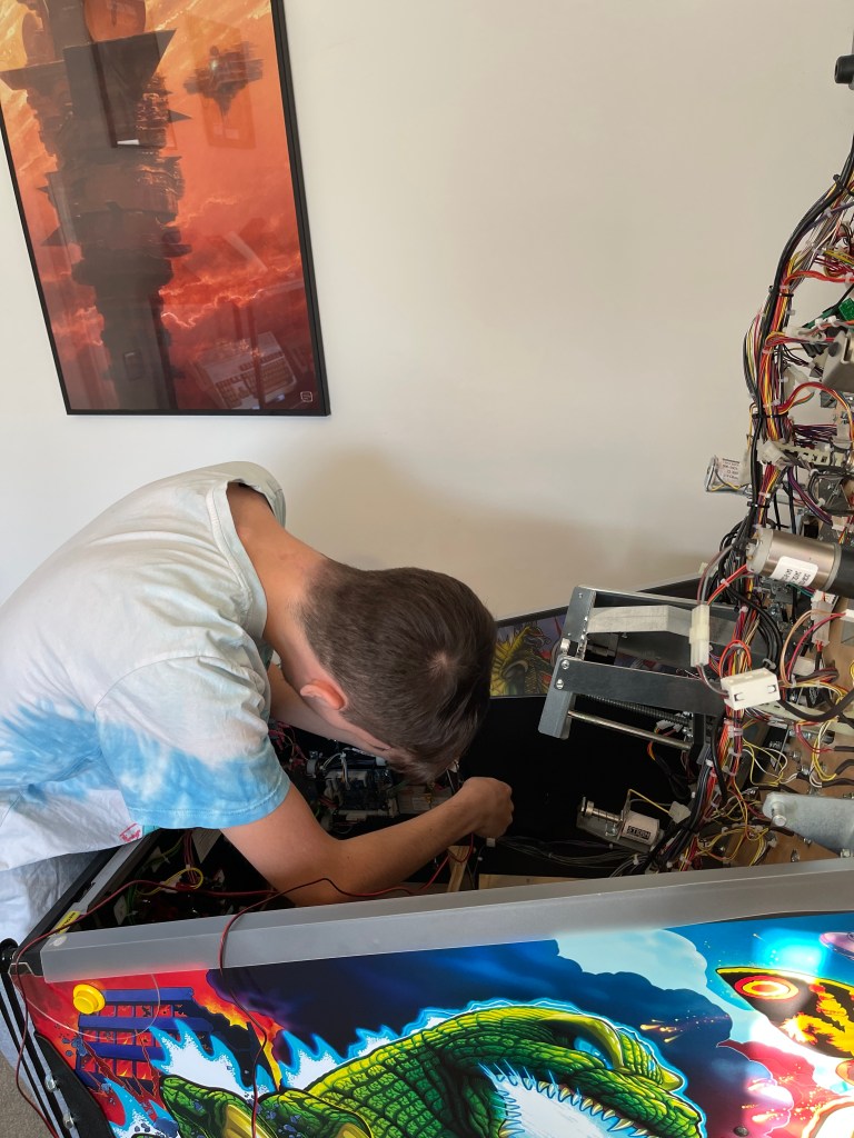 Luke and I have been having a blast playing Pinball, and our games are getting better every day and longer sessions. I found some awesome fans from Pinball Monk that help keep the flipper coils cool and retain their power. Luke helped with the installation, from planning where to lay the wires to installing the fans. It worked perfectly; there was no more fade.